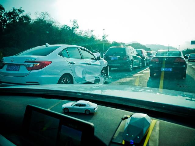进入福建后是这一天高速行程的转折点,福建多山多隧道我是知道,但是万万没想到福建段高速居然有限速80的路段,而且配合隧道整条高速的限速频率犹如心跳一会100、一会90、一会80。虽然我们一直谨慎驾驶但不幸的是我们还是被测速无情的记录了,还非常荣幸的在高速路上的实时显示屏上公布了我们的名单。在下午宁德附近春运的堵车也终于出现了。就这样堵堵停停一直到了福州,整个高速路况才得以翻身,原先的两车道变为六车道了,车速更是回归了理性的120码。此时已经日落时分了,保持车速,奋力前往第一站厦门的小眼镜大排档吃海鲜去。