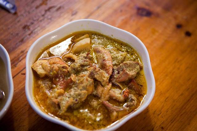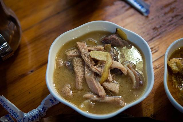晚上安排的是网友推荐的吃饭,是一家做印尼风味的食店。在海南吃印尼风味?这也是我当时看到后选择它的原因之一。店铺的位置其实挺好,就在路边,可是需要开上去一个土坡,老板在路边也不树个牌子,好在执着的我们还是找到了。小店生意挺好的,亭子造型的小包间都已经预订完了。点菜没有菜单是直接进后面看啥点啥的,这里发生了件小插曲,应该是我点的牛腩。当时我点菜就问了牛腩和咖喱鸡的价格,结果买单时写的价格又是另外的,我随即责问怎么回事,然后她才改的价格。第一因为这个插曲我有点不想推荐这家店的,但是想想总体她家的性价比和食物口味还是值得一试的,只是大家以后去还是多一个心眼点之前都问好价格吧。