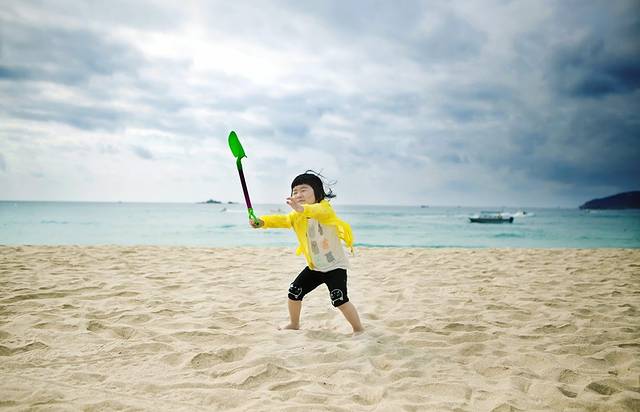 小家伙的热情还是非常高的,对于这趟海南挖沙之旅她期待了好久。