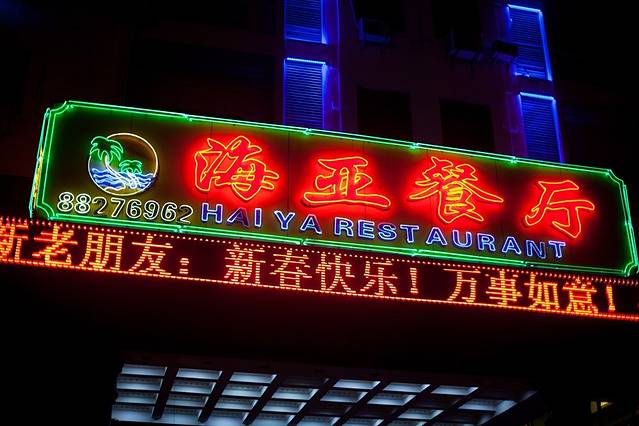 日落时分离开景区,晚餐我安排的是海亚餐厅,驱车前往。在回程的路上路过一个菜场,停车买了些菠萝蜜和芒果,新鲜的菠萝蜜的味道真的非常好吃,芒果由于春节季节不对口味一般般而且价格也不便宜。观察导航显示靠近海边的三亚湾路,预想吹着海风沿着海岸线开一段。可是结果这是我今天做的最大的错误决定,晚上的三亚湾路一排都是海鲜餐厅,而道路上全是车全是人!仿佛整个三亚的游客都集中于此了。无奈受堵,好久才逃脱出去。
