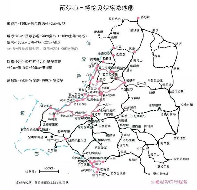 *呼伦贝尔北线景点众多,常见的是包车玩3-8天,可以根据自己的时间和司机协商路线