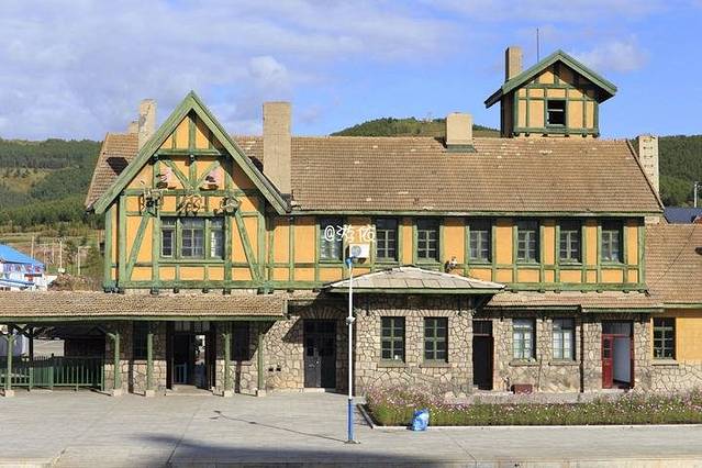 这个木质火车站是日本人修建,站里看比外面好看。不是坐火车来的小伙伴可以到铁轨对面拍照。