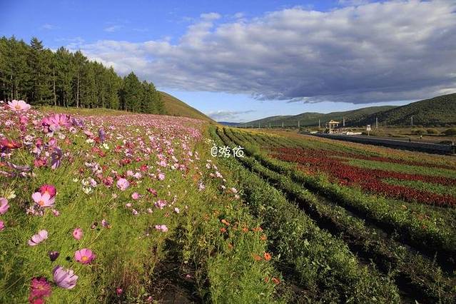 途遇一片格桑花海,又称波斯菊,旁边还有大片其它鲜花。话说这一路真是看到了无数次格桑花啊,还有向日葵啥的~