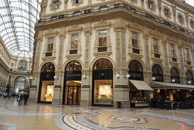 如今这座长廊是米兰重要的购物圣地,内部分布着时装店、咖啡馆、餐馆和书店,甚至连LV、Versace、Prada、Gucci、Armani等奢侈品牌店也一应俱全。