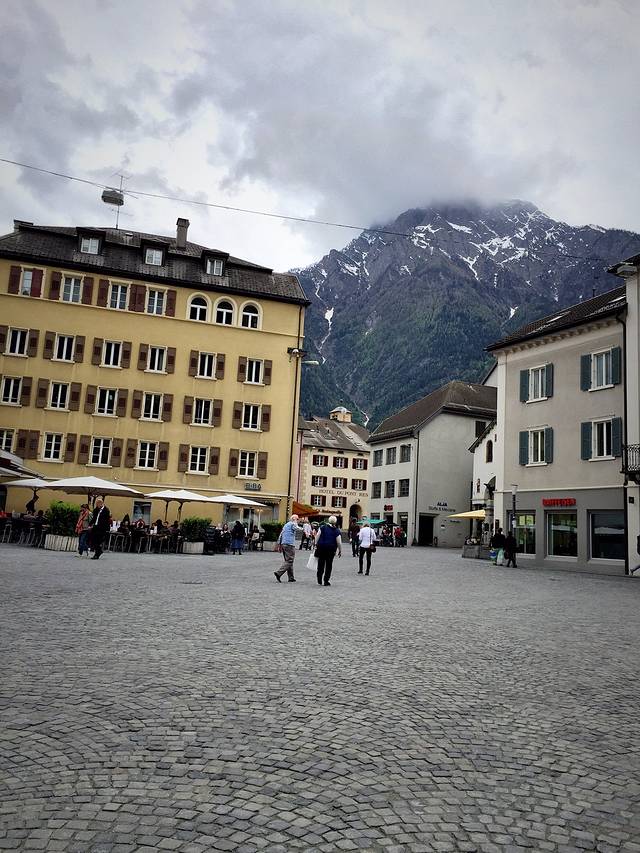 因为计划是能上马特洪峰的,所以去米兰的车票定的是晚上7点多的。但是计划赶不上变化,我们提早出来了,看看能不能把车票改时间早点去米兰。由于我们买票的时间定死了座位和时间,工作人员说无法更改了。无奈只能在Visp等了,由于我们有两个大箱子,去哪里也不方便,一直就是靠吃东西混餐馆打发时间。