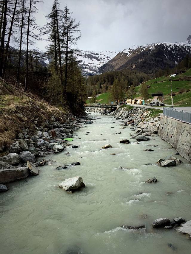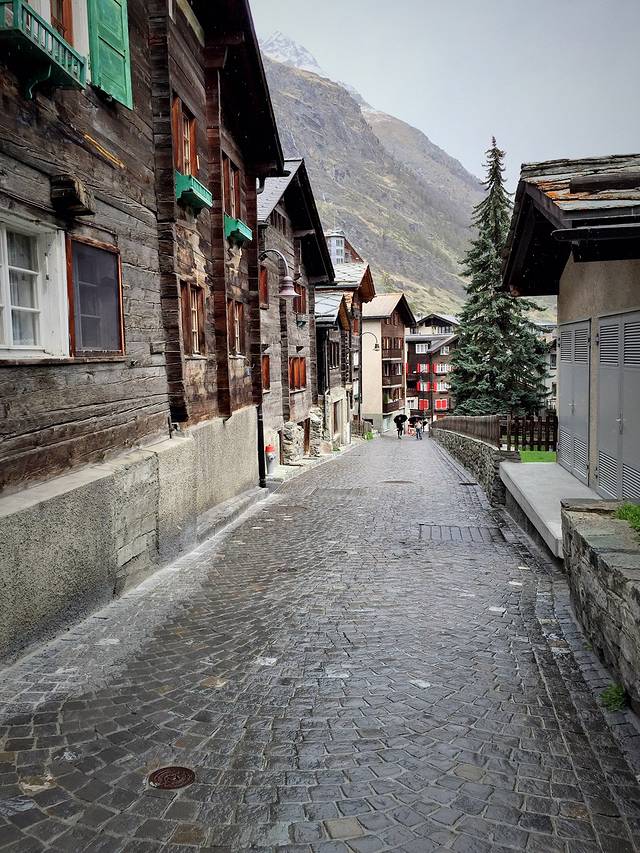 初见采马特。这里是不允许通车的,所以走路是唯一的选择。