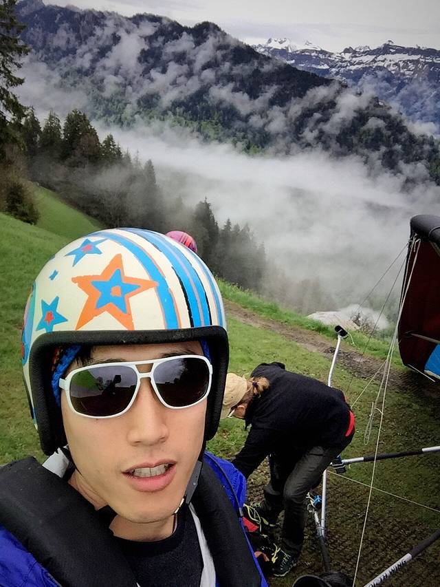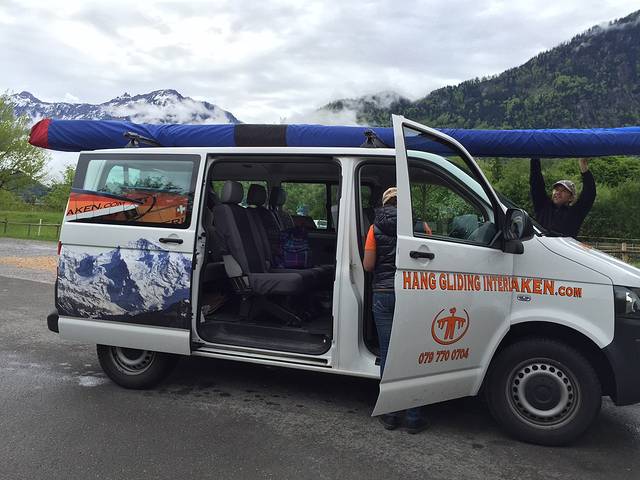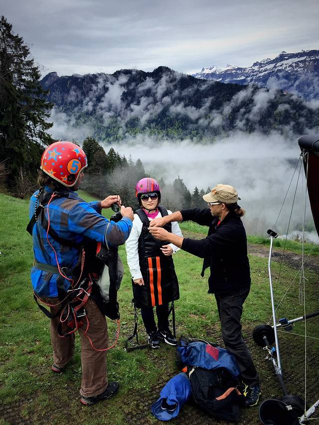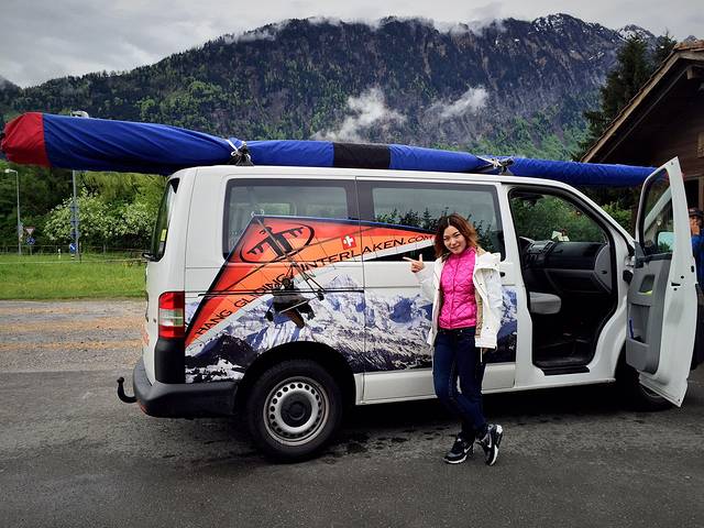 今天的天气稍微好一点了。昨天我们让酒店前台帮我们预约了今天的滑翔伞。这大早,滑翔伞公司的人来酒店接我们了。(我和老公都是爱玩的人,或者说他是陪我疯的那个人。记得我们在新西兰皇后镇还是尝试了许多极限运动,包括跳伞。)