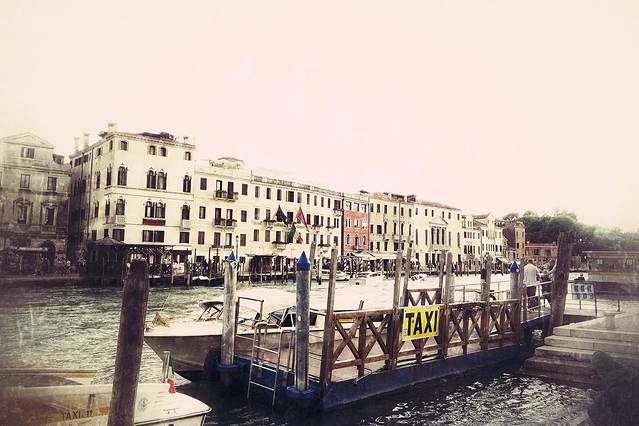 午饭完后,我们就准备坐火车去威尼斯了。刚从威尼斯火车站出来就看到这个,水上的士。