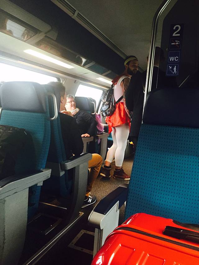 在火车上碰到一个穿得这么性感的肌肉男,真的忍不住多看几眼。。虽然我知道偷拍很不礼貌,还是没有忍住。