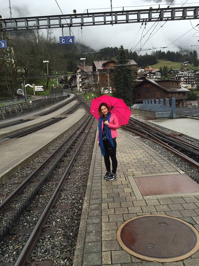 到了文根还是灰蒙蒙,两个人在这里傻乐了一会儿决定放弃少女峰了。说实话,我内心很不甘心,但是没有办法,天公不作美。