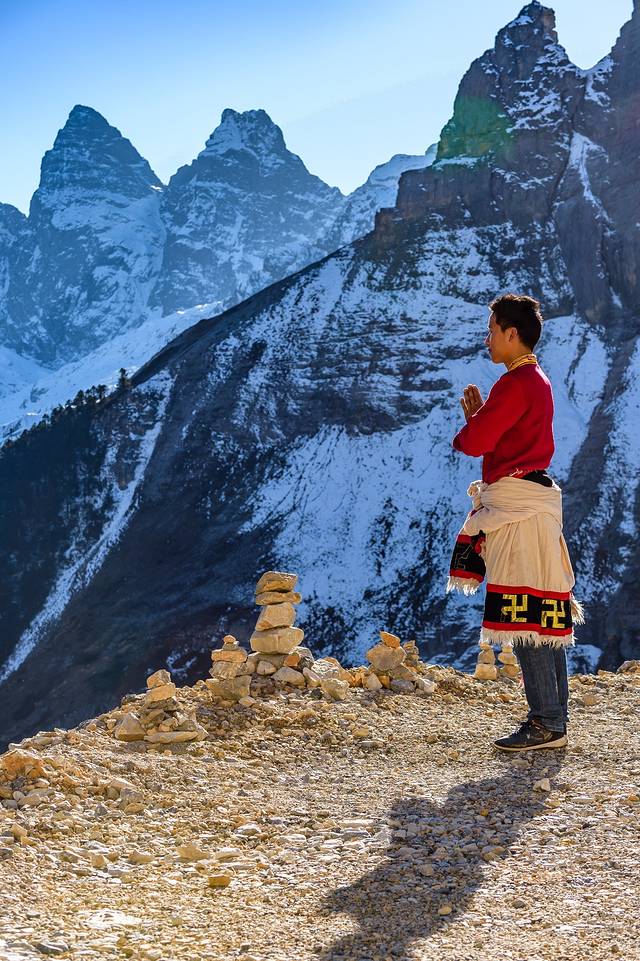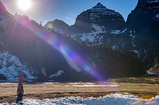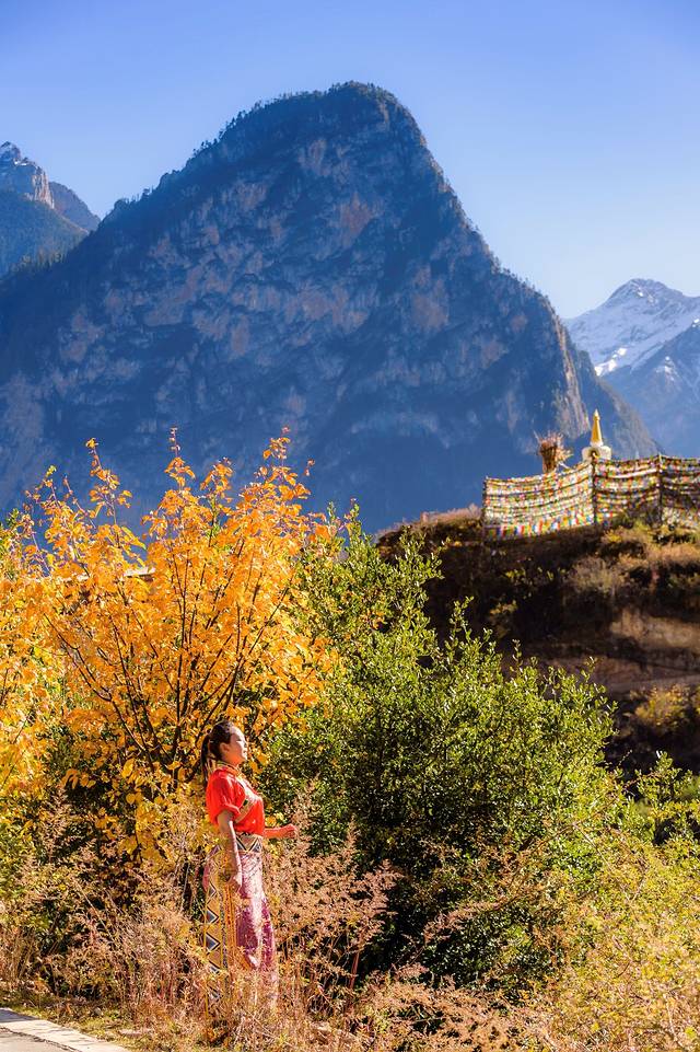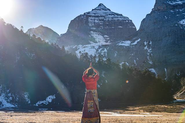 香格里拉巴拉格宗的神山下,在香巴拉的天然佛塔下,双手合十,虔诚祈祷,内心一下子通透明亮了。在这样雪域高原无比圣洁的地方,一切变得纯粹了,无怪乎仓央嘉措会写出如此美丽的情诗。