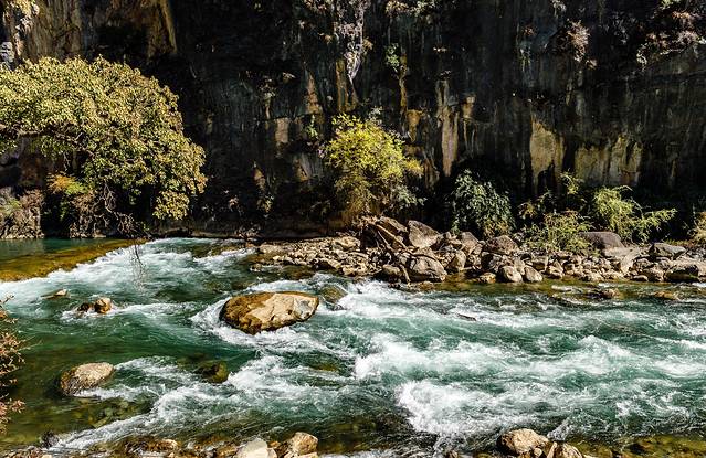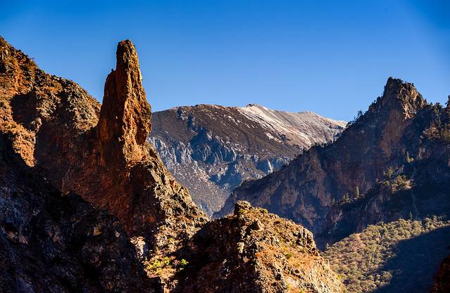 汽车很快就进入了峡谷地带,强烈的高原阳光带着极强的紫外线,穿过落差近两千米的峡谷,也穿过时不时呼啸而来的山风,刺入碧绿的岗曲河。