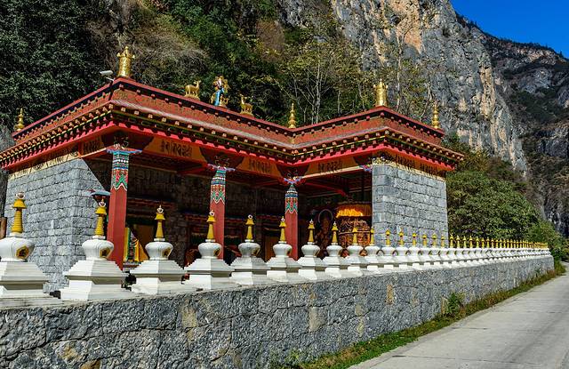 穿过险峻深幽的峡谷,望到这尊高立在山头的观音像,经过九户藏族村寨,我们来到了巴拉格宗景区大门。