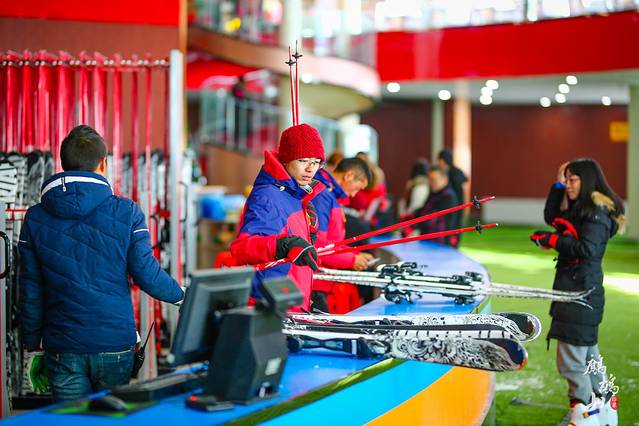 滑雪大厅和滑雪器具都是崭新的……
