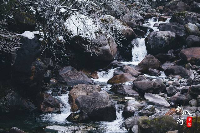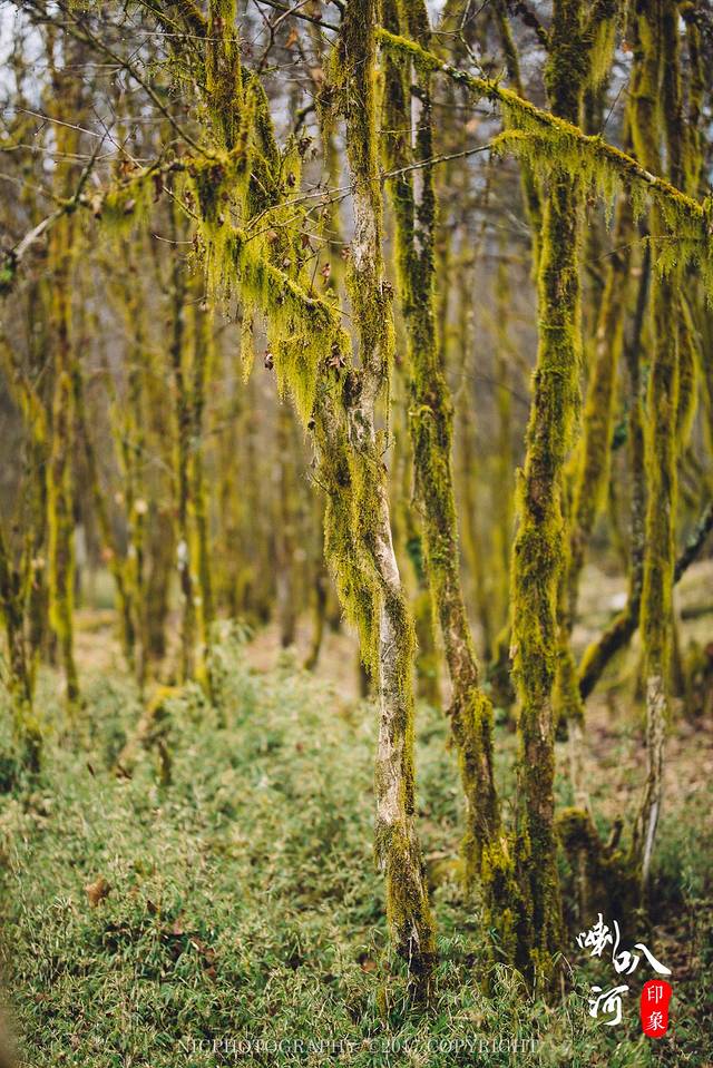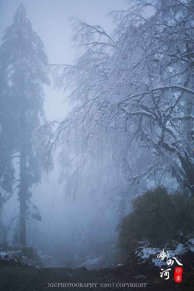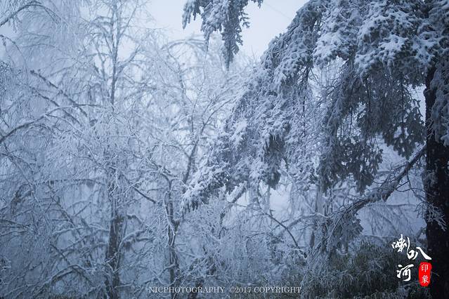 不过喇叭河因为地处雅安地区,空气湿润,温度低,所以稍微往山上走一点,树上就已经挂满了雪了。