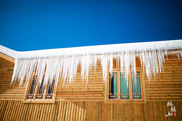 房屋上面都是美丽的冰挂,让人仿佛置身于雪乡的小村一样。