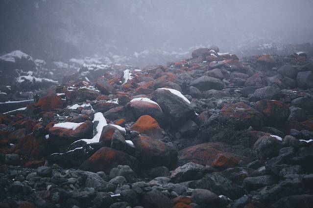 有植物学家说,这是因为这里气候适合红色藓类生物生长而附着在石头上的关系,有生物学家说,是一种低等生物生长在石头上形成的,还有地质学家说,是这里的石块因特殊地形及气候原因,某种矿物含量过高所致。