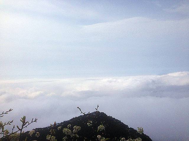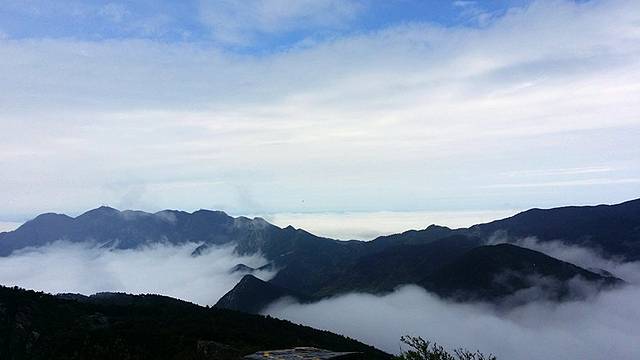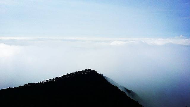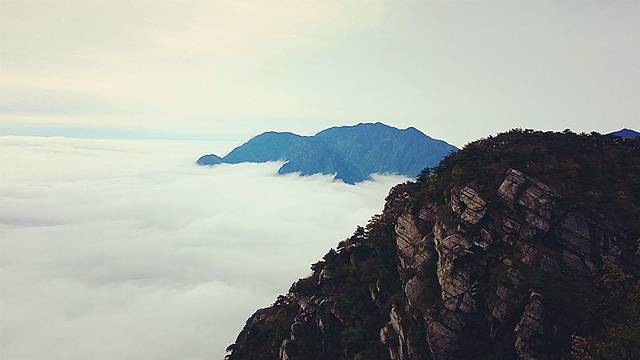 牯岭镇依旧陷于云雾,五老峰则刺破了云雾的束缚。它更高,比含鄱口更壮阔。
