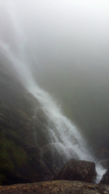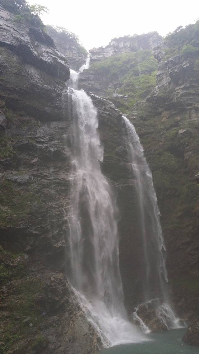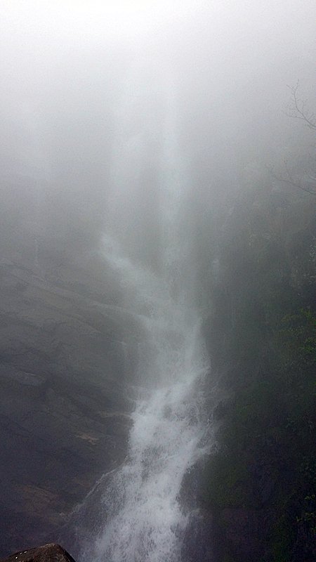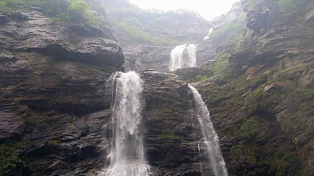 含鄱口可以走路也可以坐缆车到大口瀑布,我们是走路过去的,不料却在迷雾中前行。原本天合谷还有神龙岭和冰川森林值得一看,不过大雾什么都看不见。