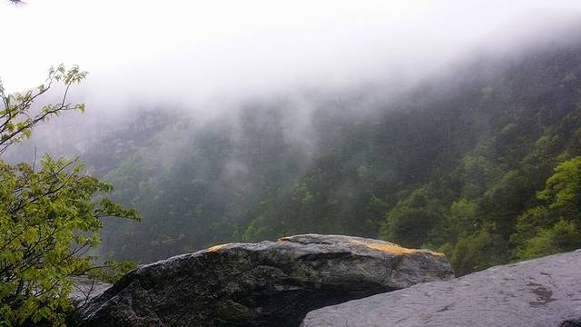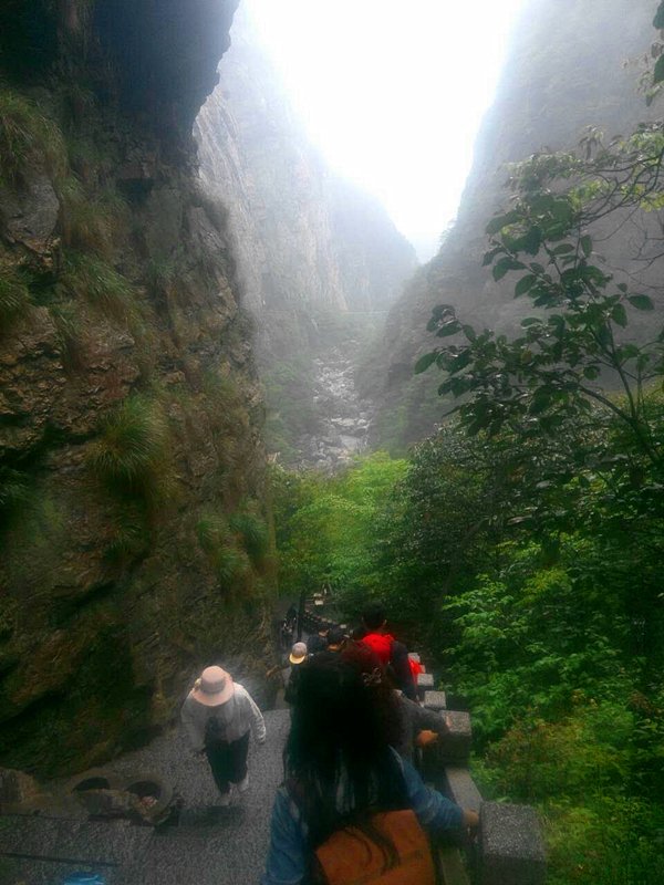 今天不走运,大雾笼罩了山谷,看不见什么风景,而且又是周末,游客比昨天多了很多,如此一来便没有继续走下去了。雨也开始越下越大,只能回去避一避了。