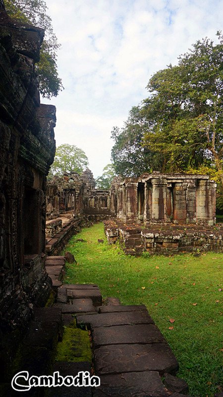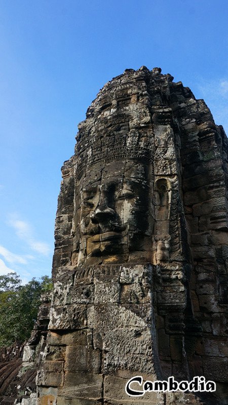 有蓝天有白云,就算残垣断壁也变得明亮精彩。最爱的是塔布隆寺里那些参天古树,蔓延在古迹之中的根那样雄壮有力,上千年来默默守护着古寺。巴戎寺里熙熙攘攘的游人,让人无法认真欣赏那一张张高棉的微笑的面孔,其实他们每一个都不同,或高鼻梁或矮鼻子,或大眼睛或眯着眼,他们每一个又相同,都面带微笑放眼世界!茶胶寺巴方寺的台阶让我心有余悸,七八十度的倾斜度让人不得不手脚并用,而窄的没有手掌宽的台阶每一步都得小心翼翼,谨慎和畏惧的走稳每一个台阶,就如同告诫人们要走好人生的每一步一样,或许这也是修建庙宇时的初衷!