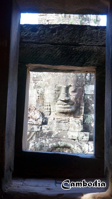 著名的“高棉的微笑”就位于巴戎寺的顶层,共54座宝塔,每座宝塔四个面,每一面都有不同的高棉人的面孔,一共216个不同的高棉的微笑!穿行其间,无论你身处任何一个角落,都会发现有双带笑的眼睛注视着你。可惜选择的时间不对,正是游客最多的时候,一群群国人旅行团,还有棒子旅行团,吵闹的让人心烦。这些人完全没有心思听导游的讲解,忙着攀上爬下的拍照,摆着各种搞笑的姿势,甚至有人和雕像来个借位亲吻,真是让我哭笑不得。