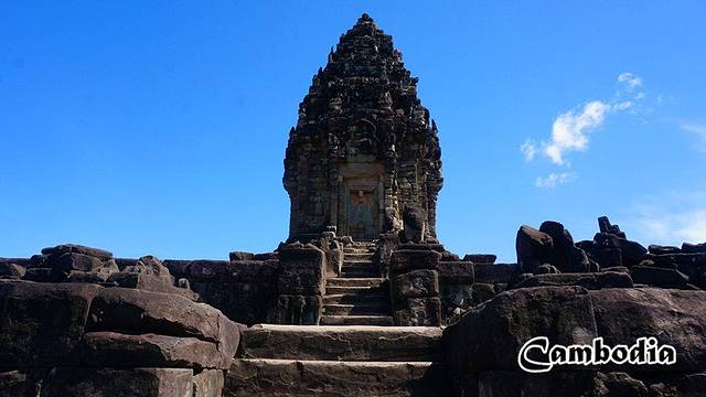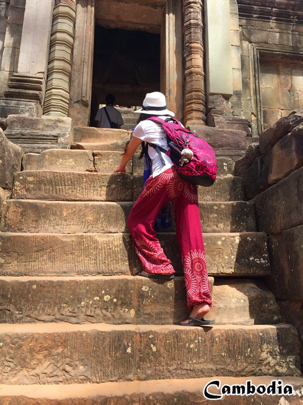 小吴哥就是指吴哥寺,吴哥寺因其宏大的规模、完美的对称、均衡的比例、精致的浮雕被称为古代东方的四大奇观之一。柬埔寨国旗上的三塔就是吴哥寺的正面像。这里象征着印度神话中位于世界中心的须弥山,在祭坛顶部的五座宝塔,象征着须弥山的五座山峰,那里便是传说中的天堂了。 通往“天堂”的台阶陡而窄,只能手脚并用地爬上去,也许是让世人感受通往天堂的艰辛吧。