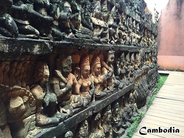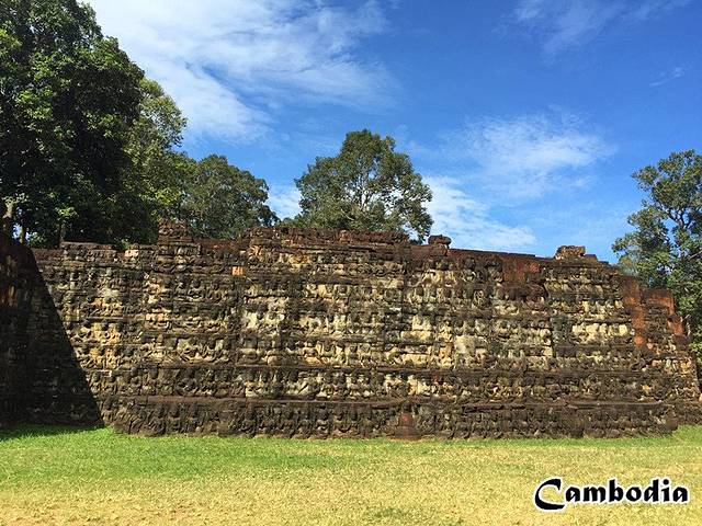 战象台,是国王阅兵的地方,正在维修中,有一个长长的回廊全都是精美的雕刻,因为有阴凉,我们走得很慢,细细的看,竟然让我在壁画中找到了一只小巨蟹!