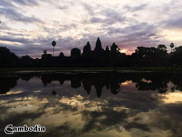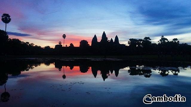 曾见过无数吴哥日出的照片,照片中吴哥的三座塔门在旖旎的霞光映照下闪着神秘的光辉,荷塘平静的水面正好倒映出整个画面,光与影,虚与实,一幅日出的画面足以让无数人震撼和向往。