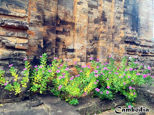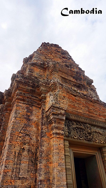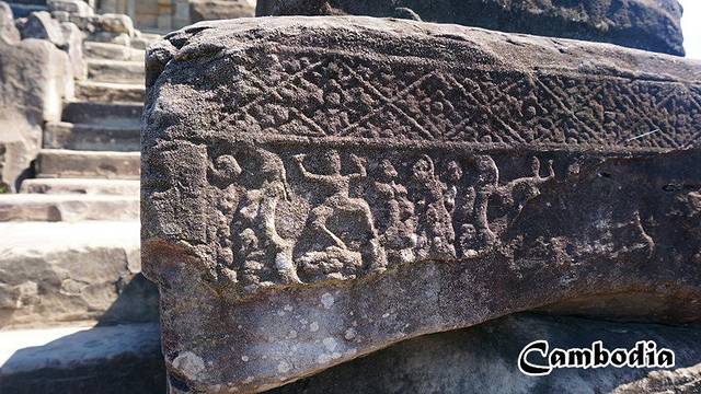 豆蔻寺是一座印度教寺庙,它真的好小,五座砖塔按南北方向一字排开,材料为红砖浅浮雕。主塔的浮雕毗湿奴、神鸟伽鲁达和神妃吉祥天,以及墙上的文字。我们去的时候有人在布置宴会会场,听司机阿龙说这是大酒店不定期为客人搞的宴会,不理解为什么允许在古迹中进行这样的活动,这样不会对古迹有损害吗?