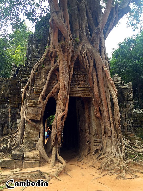 塔布隆寺是吴哥窟建筑群中最大的建筑之一。我喜欢的并不是它的宏伟,我喜欢的是这座寺庙与巨树缠绕交错的震撼场景!整座寺庙都被巨树包围着环绕着,粗壮的树根犹如巨蟒,紧紧缠住它们能抓住的一切,就这样与古庙纠缠千年,融为一体。入口的树根大的夸张,好像大树把寺庙牢牢的踩在了自己的脚下。我不得不感叹大自然的伟大,感叹生命力的顽强!
