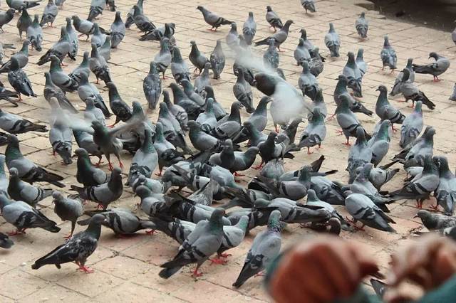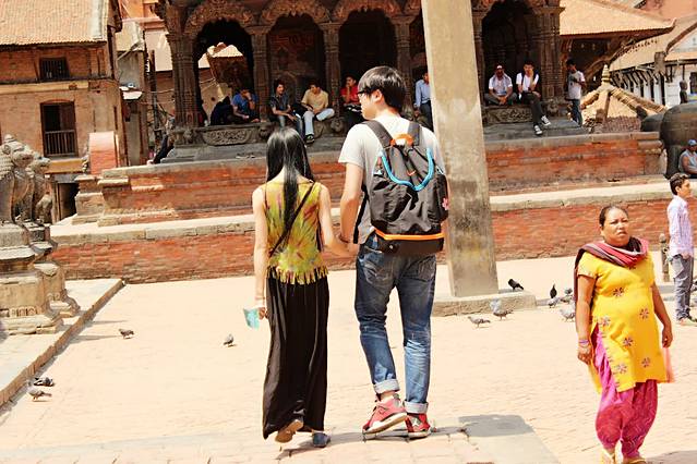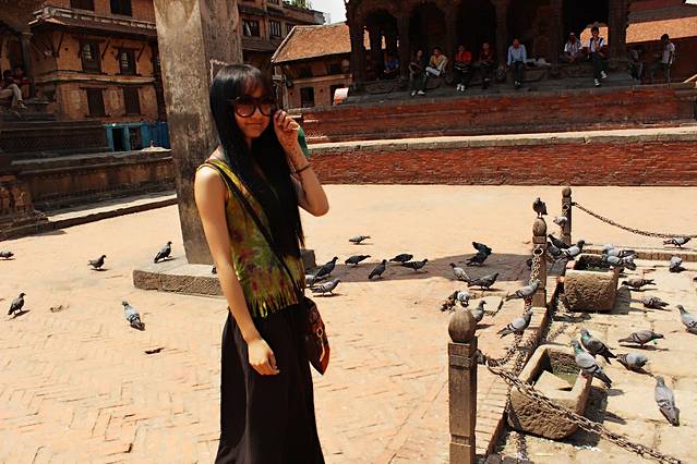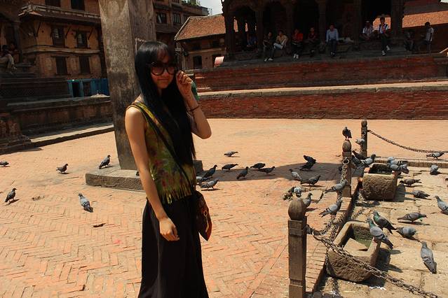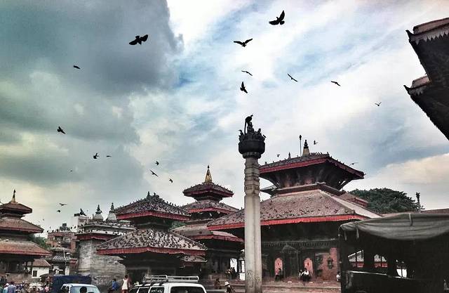 杜巴广场上有个地方,鸽子特别多,旁边也有小商贩卖鸽子的食料供游客去喂食。我和惠也没买食料,只是去那边宫殿的台阶坐着休息会,享受下慵懒的尼泊尔人如何打发时间的。广场上随处可见,当地的尼泊尔人,非常悠闲的坐在广场的台阶上聊天,抽烟。还有些欧洲的嬉皮士来来往往。
