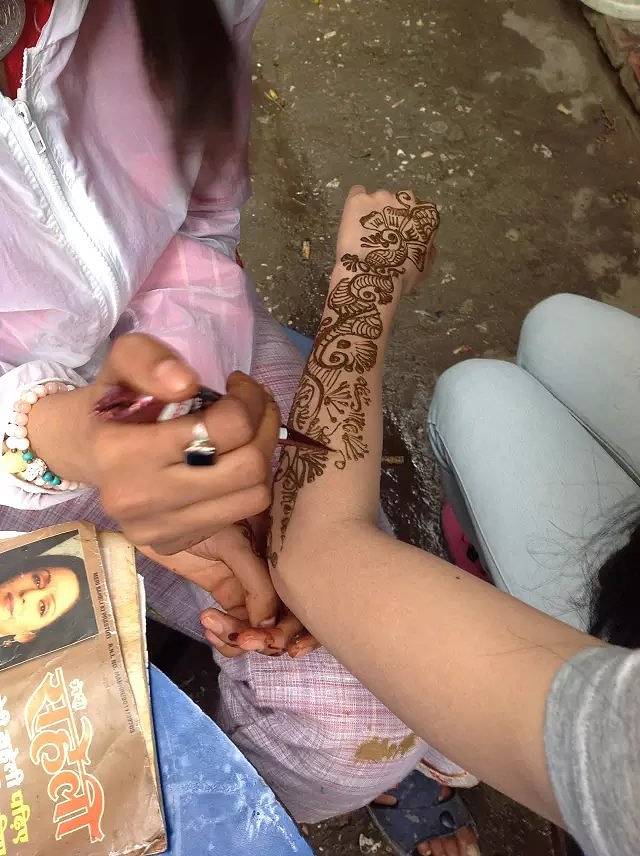 这个尼泊尔小女孩在加德满都非常有名,说的一口流利的中文和英文。她的主要工作就是穿梭在泰米尔区的大街小巷给游客在手上画图腾。由于下一天我们就要去博卡拉了,所以惠执意想要找她给自己画个手。