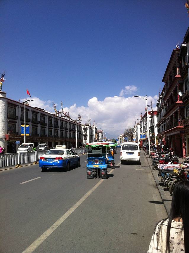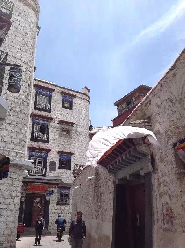 到了拉萨站,出站使劲的呼吸了一口拉萨的空气,完全没我想象的那么稀薄嘛。和车上的朋友简单的交换了联系方式就再此告别了。直接坐车前往八角街附近,据说那边的旅馆又便宜又温馨。我们提着行李箱走了不少冤枉路,同时也浪费了不少的体力。好不容易找到了旅馆,但是我发现我高反了,头疼,四肢没力,鼻子酸痛。(温馨提示:大家还是选择背包轻装出行吧,下火车或者飞机一定得马上安顿休息,千万不要学我们浪费无畏的体力,导致高反。高反是很难受的啊。)显然,这一天哪也没去。一直休整。