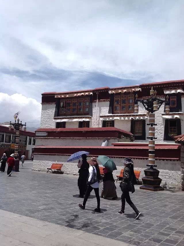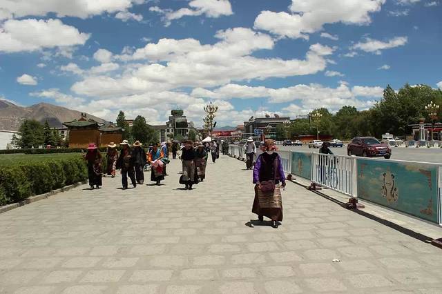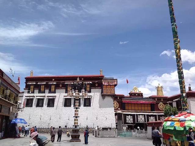 有人说来拉萨不进去布达拉宫,就像北京你没上过长城一样。但是我们这次去拉萨,布达拉宫还真没进去。本来我们是预约好了门票的,但是等我们一到售票处就被人拦住了,说惠穿裙子不让上布达拉宫,看了下预约的时间也不多了,也来不及回去换。(布达拉宫门口,有卖长裤的,50人民币一条破裤子,我们是觉得不划算没买的。)所以这次布宫没有进去成。下次吧,下次一定得进去。