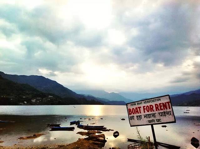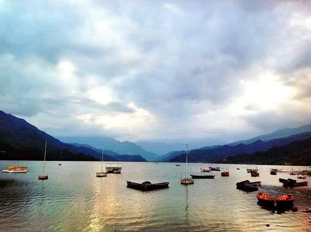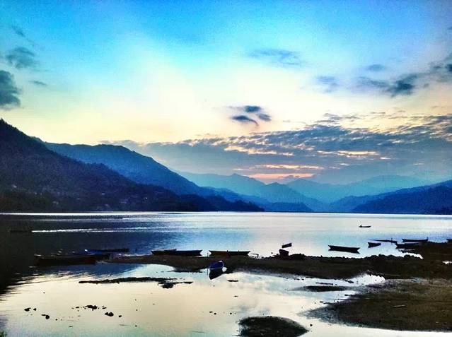 夕阳下的费瓦湖畔非常的安静,游客们也纷纷都把游船归还给了船家,找个好的地方吃饭去了