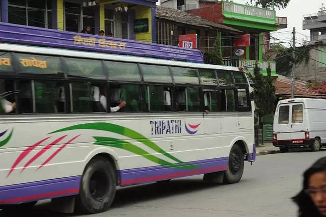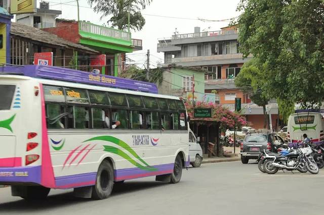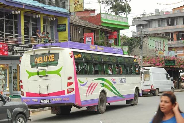 彩色的大巴士尼泊尔街头一大特色。尼泊尔人对色彩情有独钟,彩色的大巴,彩色的货车,甚至好多房子都被尼泊尔人民涂成了彩色的。