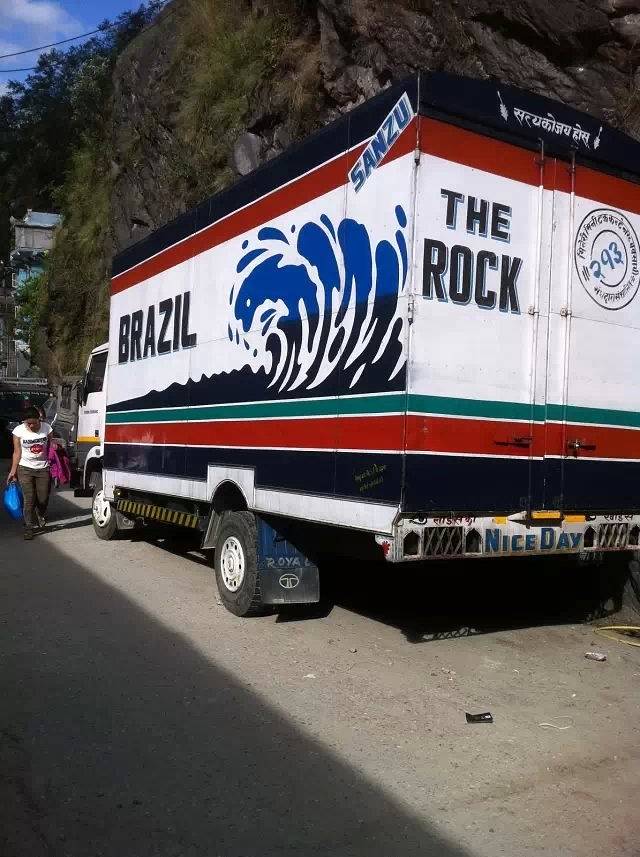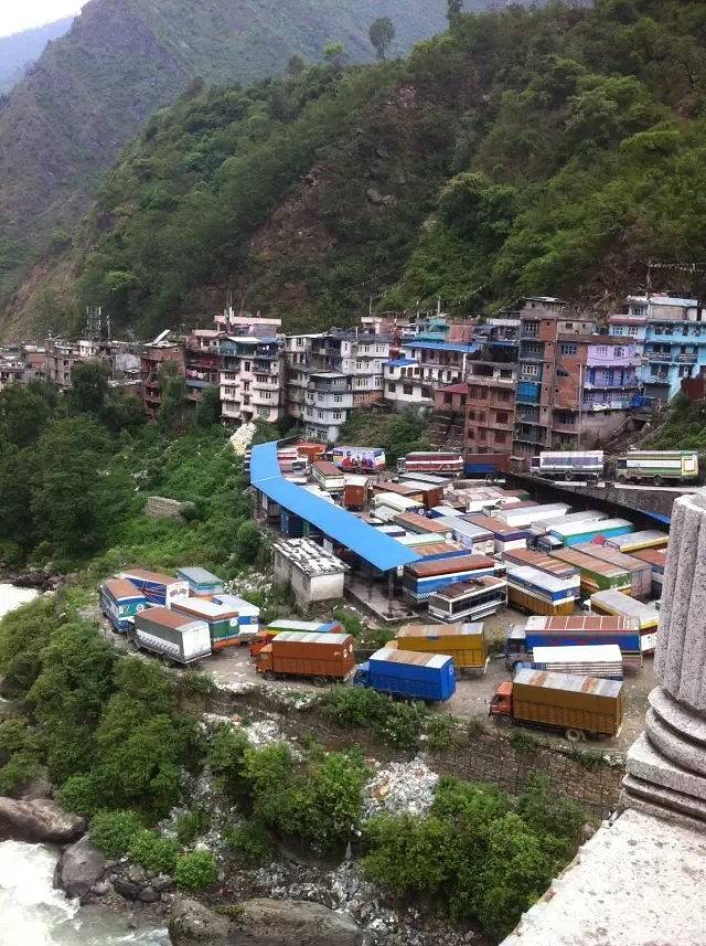 走过友谊桥,迎面而来的是一阵咖喱味。山旁都停的是印度产的TATA大巴和货车。都是开往中国运输物资的。这些车上的涂鸦很有意思。每一辆都有每一辆的风格。