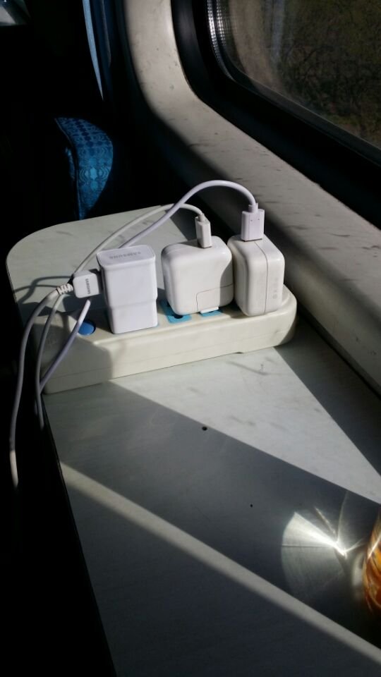 火车上的神器,妈妈再也不用担心我的手机没电了。话说回来,插线板真心有必要带着,灰常实用,特别在火车和宾馆里面。