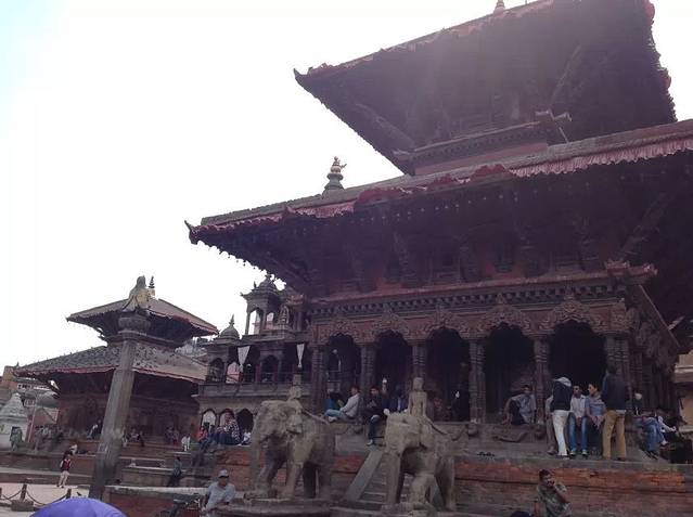 这几张图是在杜巴广场的女神殿里拍的,我们去的时候是下午3点左右,和当地人交流中得知,女神会在下午4点钟准时出现在中间那三扇窗户其中一个。我们也很好奇女神到底什么样,一直等到4点。最终女神就出现了不到一分钟,随便朝下面的人们看了看就进去了。就一个小孩子,估计还是刚刚放学上去画个妆出现下,因为我们在等待的时候看到了一个尼泊尔女孩背着书包匆匆忙忙的上去了。