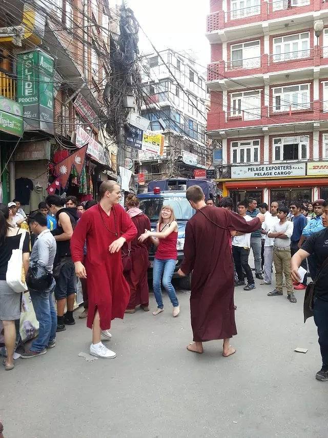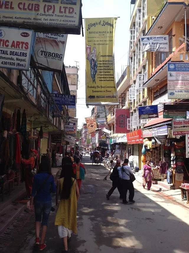 大约尼泊尔时间下午2点左右到了加德满都的泰米尔区,一般外国的游客都会选择住在泰米尔区,那边相比其他地方更为繁华点,各国的菜系都有,西餐,中餐,尼泊尔餐等。旅馆更是满大街,所以你完全不必要担心找不到住的地方。反正游客需求的东西那边应有尽有可把。我们一行人拖着行李,到处找酒店。一路上碰到不少尼泊尔人拉你去酒店住宿,然后他们拿回扣。遇到这样的人,你英语好的话,可以和他们沟通沟通,他们带你去的酒店也不一定很差。但是我们当时还是执意先找了家中国人开的阳光酒店。当时觉得价格也不贵。一间房大约70人民币,但是条件的话是最普通的那种。