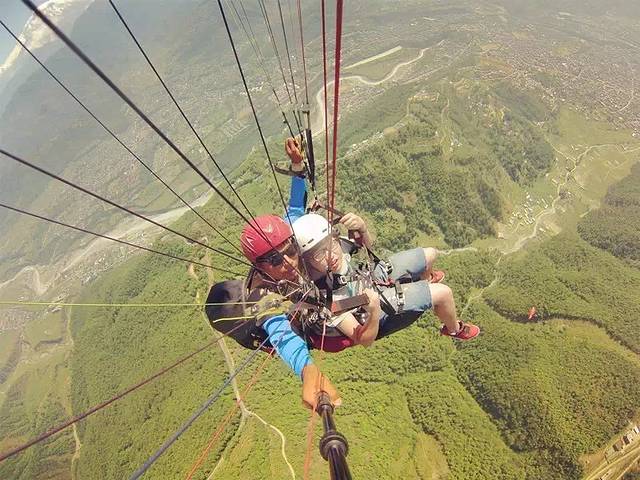 这里就是我们起飞的地方,教练会带你跑两步。然后直接“跳”下去悬崖,你的伞也随之飞起来了。