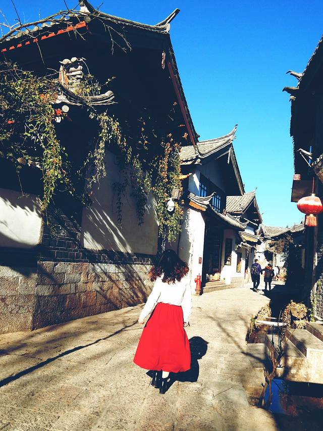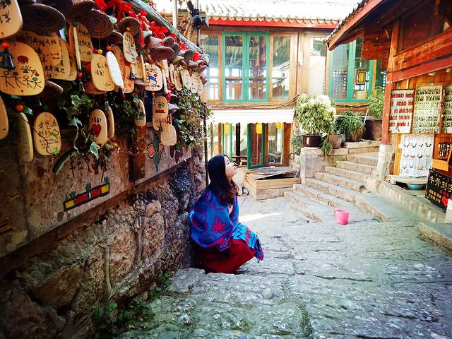 当地人都说,逛古城最好是晚上逛,因为晚上热闹,灯火酒绿,有酒有音乐。我却喜欢白天的古城,小河流淌,一切都是这么安静,自然,尽管这中间人来人往,可你还是能在这里找到你喜欢的小角落。午后的阳光温暖静谧,坐在青石板上晒晒太阳,让你的心在这里找到知音。我喜欢坐在大水车的广场上,听着吉他,唱着民谣。从南山南,到去大理,就算是一首陈奕迅的好久不见都在这里被赋予了民谣的气息。我喜欢街边小店里的纳西姑娘拍打着手鼓,那声音美丽又动听,在这里你愿意为她驻足,你愿意在这里倾听。我喜欢木府前面的青石板桥,过往的人很少,流水清澈,小河流趟。我喜欢穿行在小巷里的文艺店面,明信片,大冰,还有你不得不出发的理由。我喜欢大水车旁的东巴许愿风铃广场,这里有最美好的誓言,有最真切的情谊。