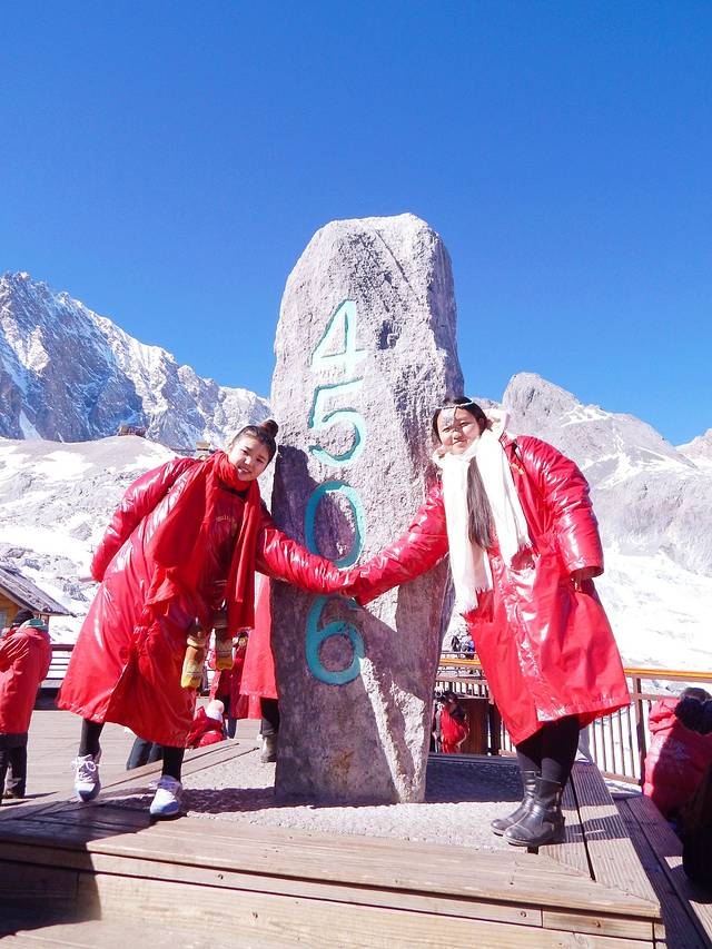 如果非去不可的话建议抱团,方便,省心,价格合理。能不去的话就不去了吧,反正我是没觉得有多好,都是炒烂了的景点。如果时间允许的话建议去香格里拉的梅里雪山或者是石卡雪山,反响都比玉龙雪山要好。我报的团提供羽绒服和氧气瓶,对没有错,就是这种红遍一片天的羽绒服,瞬间逼格就没有了,后来有小伙伴说,我的云南之行算是毁在这大红袍上面了,我表示也很无奈,毕竟冷啊。