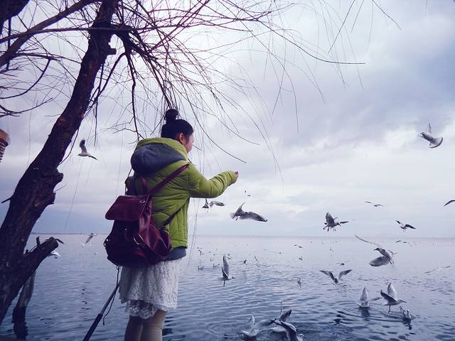在洱海边喂了喂海鸥,刷的一下子,就全部飞起来了。如果已经做好了打算环洱海的话可以自己带饼干过来,这里的海鸥很多,成片成片。
