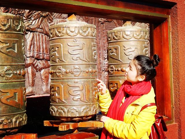 一大早就去了传说中世界上最大的转经筒,真的好大,据说要转单数祈福会有好运,3,5,7....