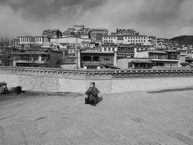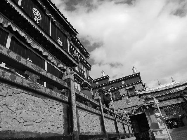 由于我不能进寺庙,所以我选择一个人慢慢的逛完整个松赞林寺,在香格里拉的寺庙很多地方都是不能走回头路的,顺时针沿着寺庙走,不知道为什么对藏文化这么痴迷,可能是对西藏的执念太深,但在这里,我内心真的很平静。看着走过身边的僧侣们,他们也在说笑。