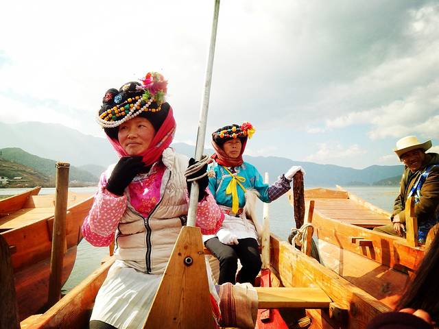 娇羞的摩梭族阿妹阿哥还在船头为我们唱起了情歌......虽然我们没有听懂其中的歌词,但摩梭人的热情让我感受到了家的温暖,我喜欢他们真诚腼腆的笑容。