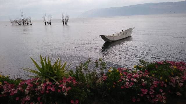 大理的天气真的是说变就变,明明昨天还艳阳高照,今天雨就稀里哗啦的下了起来,既然来了一趟大理不环一下洱海那未免太遗憾了,尽管下着雨,我和小伙伴还是出发了,倔强又任性。在古镇做公交车到达才村码头,租了一辆电动车就开始了我们短暂的环海之旅。