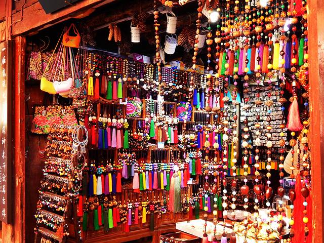 在束河古镇买纪念品是一个不错的选择,为什么捏,因为价格比大研古镇便宜啊亲们,小饰品,手信,那些都可以选择在束河古镇就买了。云南特产鲜花饼,大街小巷都有卖,像我这么无耻之人,是走到哪里尝到哪里,免费品尝都摆在门口,最后发现....吃饱了。很多人都建议鲜花饼去昆明买比较好,这次没有去昆明,所以不知道啦,没有比较,但是相比较大理来说,丽江的价格还是要便宜一些。一般去买鲜花饼都可以让他包邮送到家,所以不用担心要塞满整个行李箱。鲜花饼嘉华的最有名,我只能说到这里了,毕竟我尝遍大街小巷并没有发现什么实质性区别,所以随意就好啦。